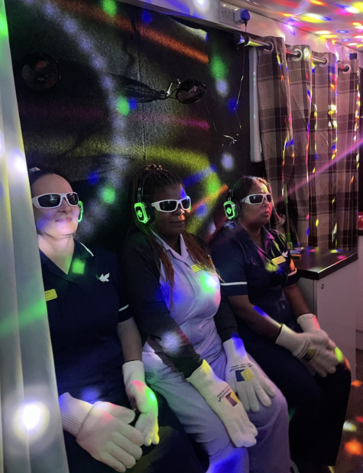 Training2care and their mobile van visited our home and took 8 team members from each Doveleigh Care home into the shoes of someone living with dementia.