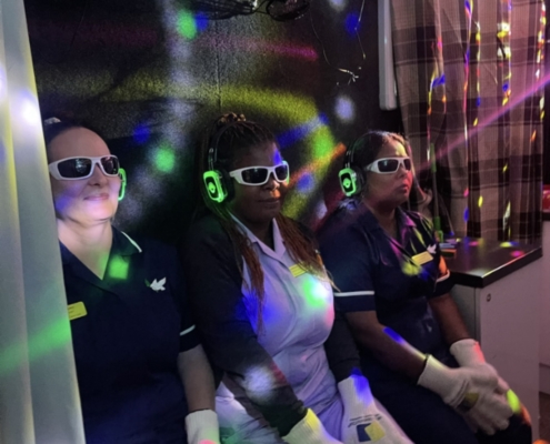 Training2care and their mobile van visited our home and took 8 team members from each Doveleigh Care home into the shoes of someone living with dementia.